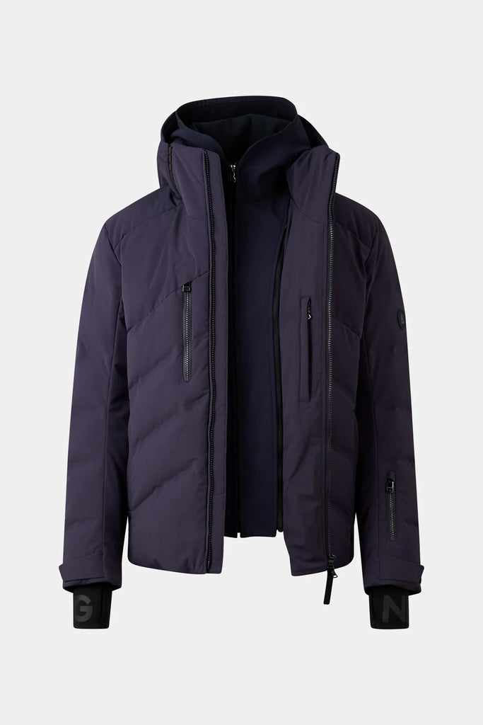 The Jervis-D is a waterproof ski jacket with 4-way stretch, goose down insulation, and a removable softshell liner. Features mesh ventilation, adjustable hood, and a secure hem system for reliable mountain performance.