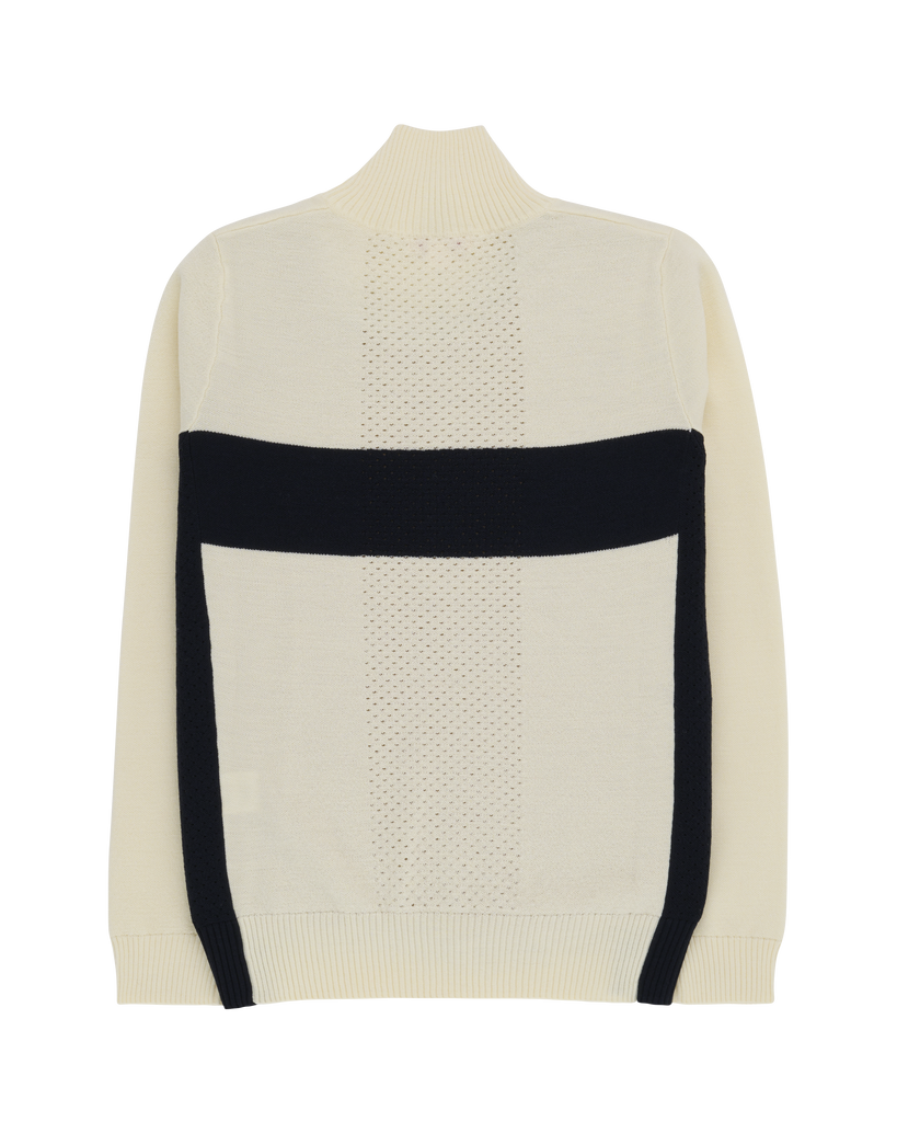 Engineered from a merino wool and recycled polyester blend, this half-zip delivers the thermal regulation serious athletes demand. Strategically placed mesh panels enhance airflow during high-output efforts, while the tight knit construction maintains structural integrity and freedom of movement. Built for demanding winter conditions where performance matters.