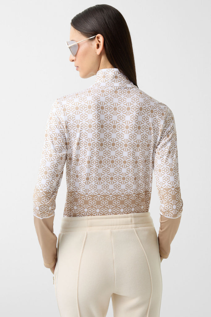 This midlayer combines technical performance with distinctive alpine aesthetics. Featuring a striking design print accented by contrasting details and sleeve branding, it delivers both style and substance on the mountain. The responsive stretch fabric moves with you through demanding terrain, while the ergonomic stand-up collar with full zip provides versatile layering control and comfort during intense activity.