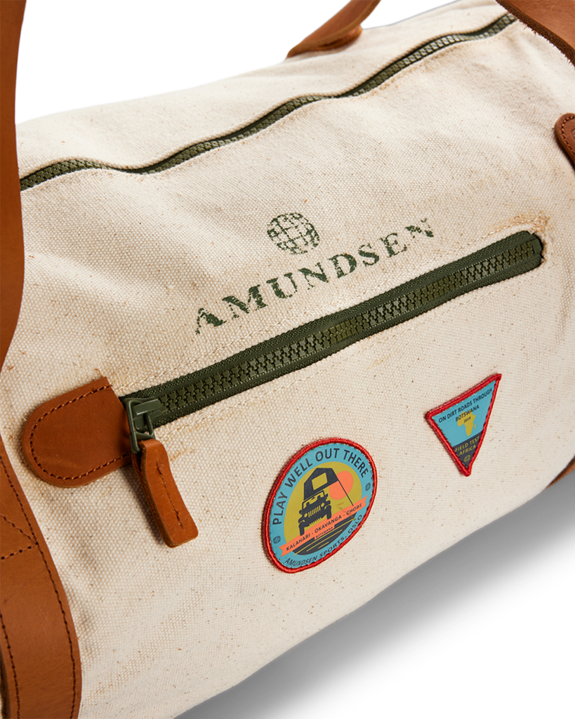 A 35-litre duffel built for travel. Made from durable cotton canvas with leather details and airline carry-on compliant dimensions. Features reliable YKK zippers, multiple pockets for organisation, and a removable shoulder strap. Safari-inspired design meets practical functionality.
