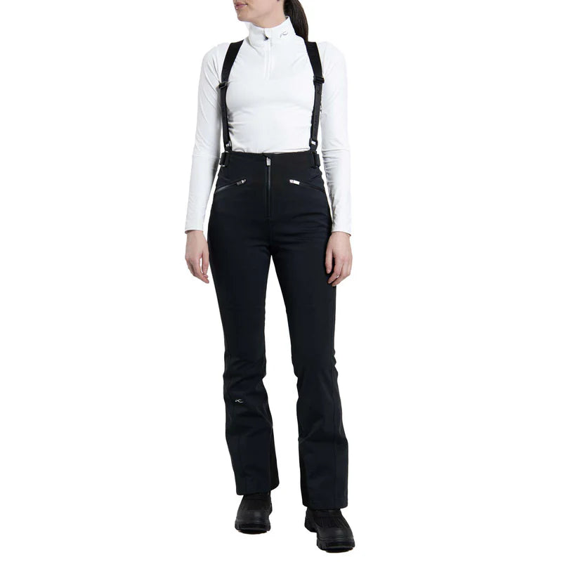 Built for serious skiers, these women's pants combine waterproof and breathable construction with graphene insulation to maintain optimal warmth across varying conditions. The supportive high waist and detachable suspenders deliver a customized fit, while durable abrasion-resistant panels shield against edge contact. Convenient zippered boot openings streamline transitions between runs.